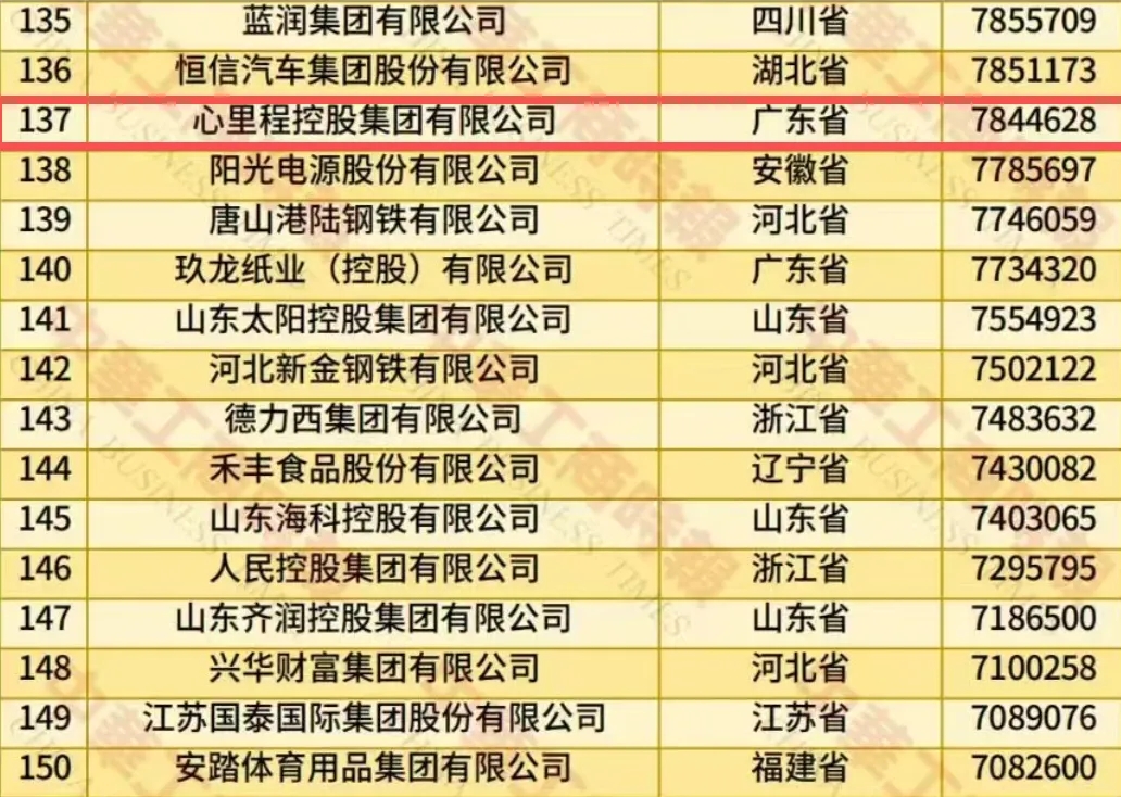 心里程集團榮登2025中國民營企業(yè)500強第137位